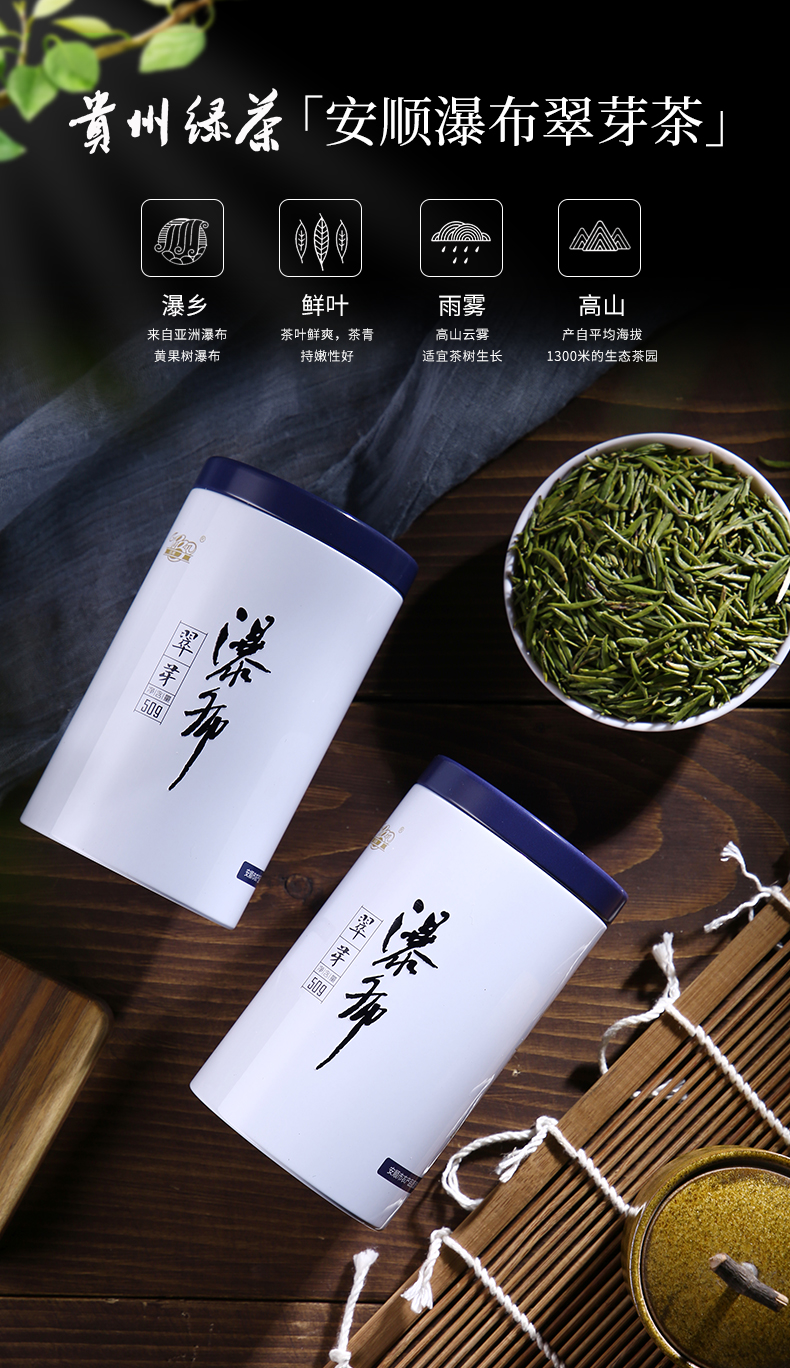 瀑布茶品牌是安順市人民政府主打茶葉品牌,省級重點打造區(qū)域公共品牌,屬貴州五大名茶,先后獲得獲“中國農(nóng)產(chǎn)品區(qū)域公用品牌”、“貴州省著名商標”、“貴州省名牌產(chǎn)品”等榮譽稱號。近年來,在各級部門大力推動下,瀑布茶品牌不斷發(fā)展壯大。截止目前,現(xiàn)有瀑布茶品牌加盟企業(yè)23家,輻射茶園面積200000余畝,其中綠色食品認證茶園基地面積7000余畝,有機食品認證基地面積2500畝。擁有“瀑布毛峰”、“瀑布翠芽”、“瀑布紅茶”、“瀑布翠龍”等產(chǎn)品,多次獲得“中綠杯”、“中茶杯”、“華茗杯”等大獎;分別榮獲第14屆中國國際農(nóng)產(chǎn)品交易會金獎、第18屆中國綠色食品博覽會金獎、“黃山杯”首屆全國傳統(tǒng)名茶產(chǎn)品質(zhì)量特別金獎、安順十大旅游商品等殊榮及稱號。