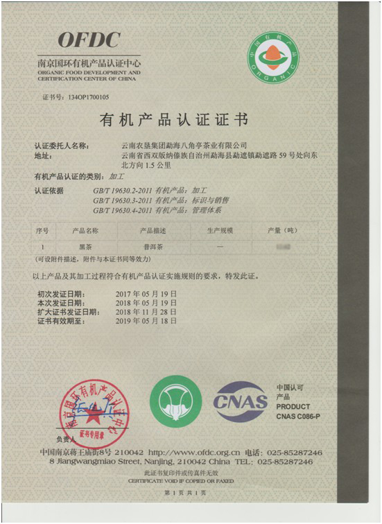 云墾茶業(yè)集團(tuán)下屬茶葉生產(chǎn)企業(yè)——云南農(nóng)墾集團(tuán)勐海八角亭茶業(yè)有限公司原名黎明茶廠,是我國歷史最為悠久的茶企之一,曾位列“中國普洱茶十大知名品牌”“十大最受歡迎茶葉品牌”、“中國普洱茶十大暢銷品牌”中,成為今天市場上最有影響力的品牌之一。公司產(chǎn)品獲得“綠色食品”、ISO9001、 HACCP和云茶品牌(YC)4項(xiàng)認(rèn)證,連續(xù)獲得“云南名牌農(nóng)產(chǎn)品”“云南名牌產(chǎn)品”“云南省著名商標(biāo)”等品牌榮譽(yù),公司生產(chǎn)的多款普洱茶在歷次專業(yè)評比中多次獲得特等金獎和金獎。在2018第五屆中國企業(yè)五星品牌論壇上,云南農(nóng)墾集團(tuán)勐海八角亭茶業(yè)有限公司上榜中國普洱茶行業(yè)影響力品牌——“金芽獎”,公司負(fù)責(zé)人陳勝軍先生獲“陸羽獎”,被授予2017“國際十大杰出茶人”榮譽(yù)稱號。