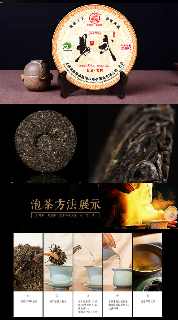 ??——八角亭茶業(yè)公司:經(jīng)營(yíng)方式為生產(chǎn)加工、銷售,主營(yíng)普洱茶、緊壓茶、兼營(yíng)毛茶收購(gòu)。目前以生產(chǎn)、加工、銷售“八角亭”系列普洱茶為主,是云南省農(nóng)業(yè)產(chǎn)業(yè)化龍頭企業(yè)。“八角亭”商標(biāo)獲得云南省著名商標(biāo),“八角亭”牌普洱茶榮獲云南省名牌產(chǎn)品和云南省名牌農(nóng)產(chǎn)品。已先后通過(guò)工業(yè)生產(chǎn)許可證、ISQ9001與HCCP認(rèn)證、云茶牌認(rèn)證(YC)等項(xiàng)工作,在歷次專業(yè)評(píng)比中“八角亭”普洱茶多次獲得特等金獎(jiǎng)和金獎(jiǎng)。2017年5月,“八角亭”牌老班章茶葉獲得了有機(jī)茶資格認(rèn)證。八角亭茶業(yè)公司多次進(jìn)行了技術(shù)改造,現(xiàn)已建立了標(biāo)準(zhǔn)化生產(chǎn)車間和設(shè)備,年設(shè)計(jì)生產(chǎn)量達(dá)3000噸,是整個(gè)公司的主體核心企業(yè)。