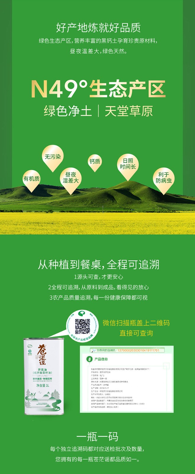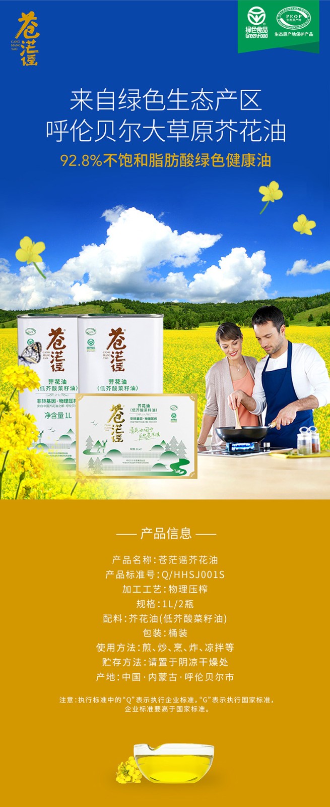 呼倫貝爾農(nóng)墾出品蒼茫謠芥花油低芥酸菜籽油非轉(zhuǎn)基因1L*2禮盒