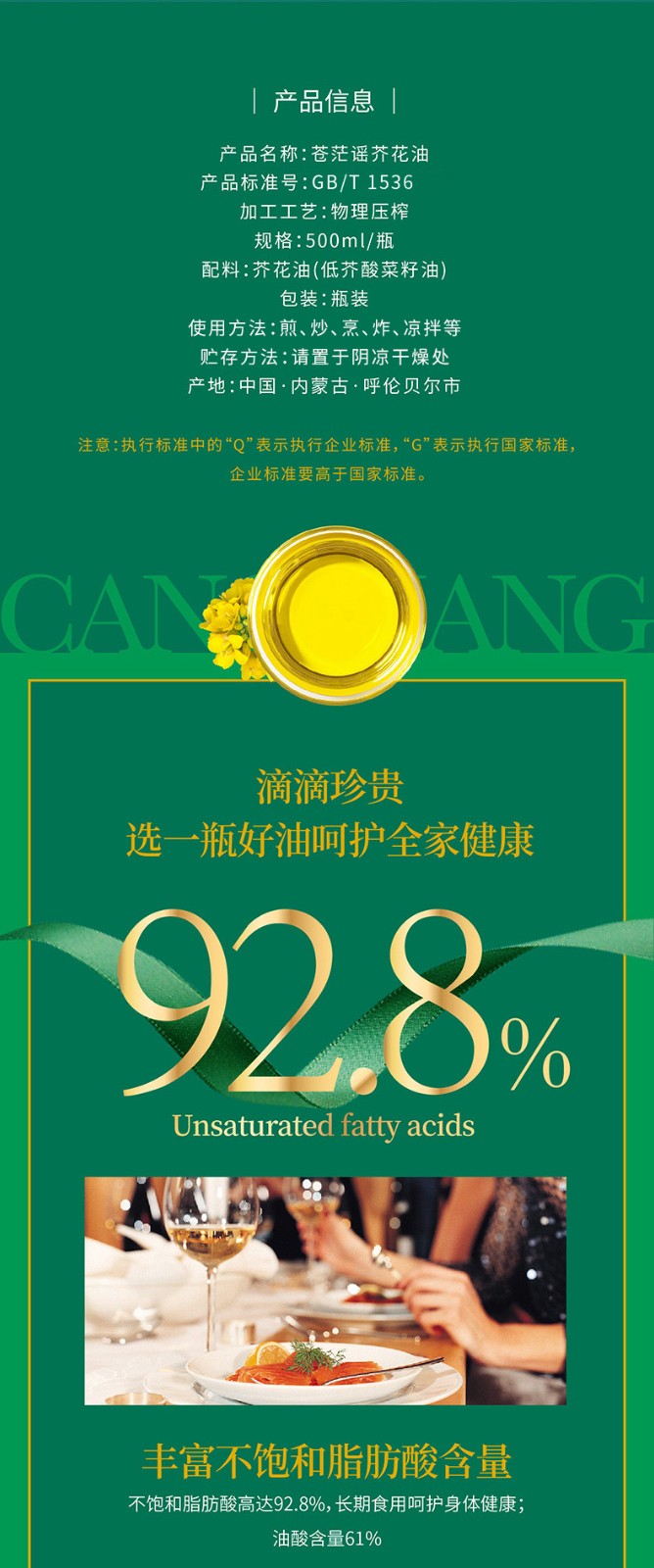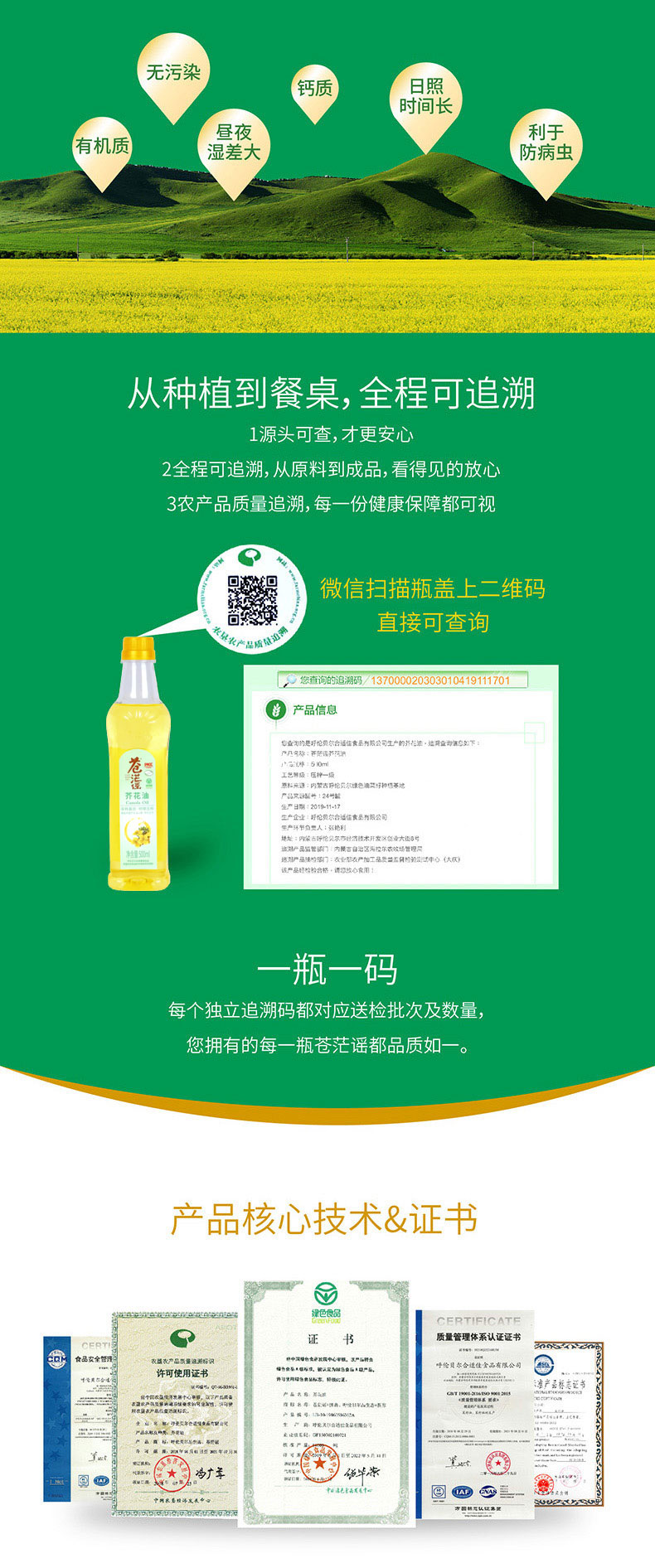 呼倫貝爾農(nóng)墾出品蒼茫謠芥花油非轉(zhuǎn)基因食用油500ml*6