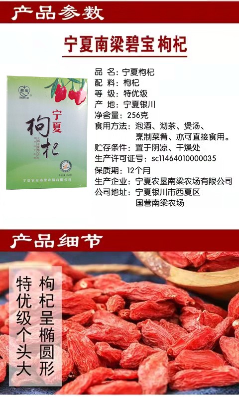 寧夏農墾南梁農場有限公司【原寧夏枸杞企業(集團)公司】成立于1992年8月,位于銀川市西夏區南梁農場,是寧夏農墾集團有限公司所屬的枸杞種植、加工、銷售為一體的專業化公司。已有50多年的枸杞栽培歷史,所產枸杞素以粒大、肉厚、籽少、味甜、藥效高而居寧夏枸杞之冠。